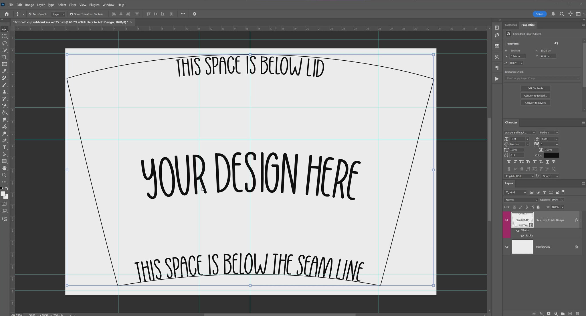 Template for the Sublimation Blanks UK 16oz Sublimation Insulated Hot/Cold Cup